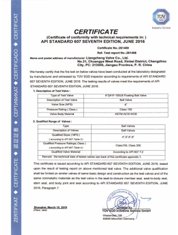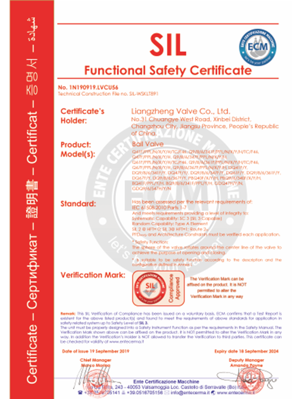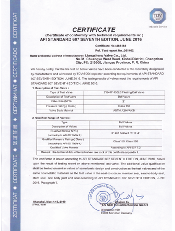 良正閥門均通過了”TS”特種設(shè)備制造許可A級認(rèn)證,API6D美國石油協(xié)會(huì)認(rèn)證,ISO9001國際質(zhì)量體系認(rèn)證,ISO14001環(huán)境體系認(rèn)證,ISO45001職業(yè)健康安全管理體系認(rèn)證,德國南德TUV頒發(fā)的API607防火認(rèn)證,SIL3安全評估證書,CE歐盟證書,兩化融合證書,知識(shí)產(chǎn)權(quán)貫標(biāo)證書,AA計(jì)量、AAA測量體系等證書。